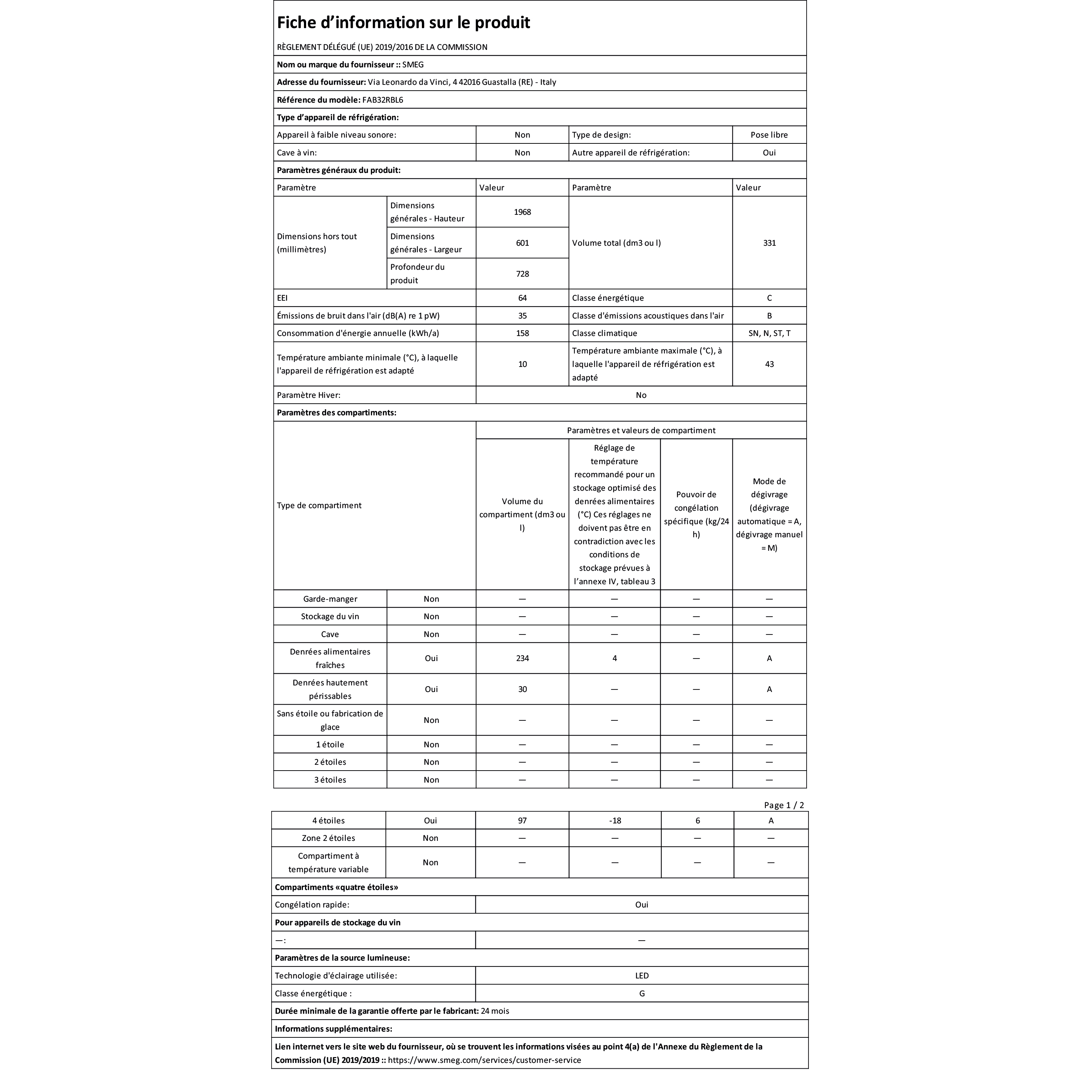 SMEG - FAB32RBL6 - Réfrigérateur - combiné